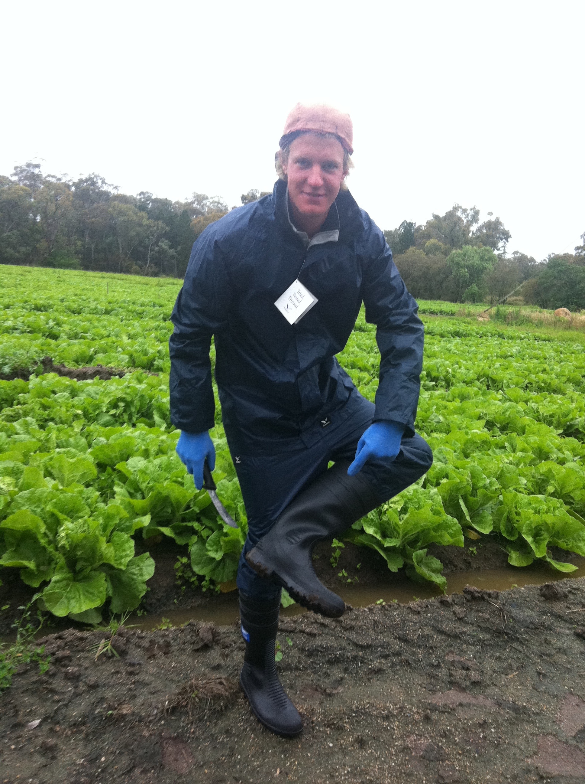Blåmandagen uteble. Arbeidet gikk hurtig og godt. Sjefen sa «this week is busy, mad Monday, mad Tuesday, mad Wednesday and mad Thursday». Dette er fordi det er førjulstri også i Australia. Folk spiser dobbelt i julen, mer grillmat, mer salat og mer kald øl. Grønne glitrende salat god dag. EMOen (emotional) som jobber på gården falt å slo seg på jobb. Han startet å blø og Anders kunne bekrefte at han ikke var Kongelig. Rødt blod mot kritthvit hud. Anders sa «if it’s don’t kill you, it will make you stronger, man up!» Tydeligvis snakket han for døve ører, gutten på seksten gikk hjem fra arbeidet ved lunsjtid.