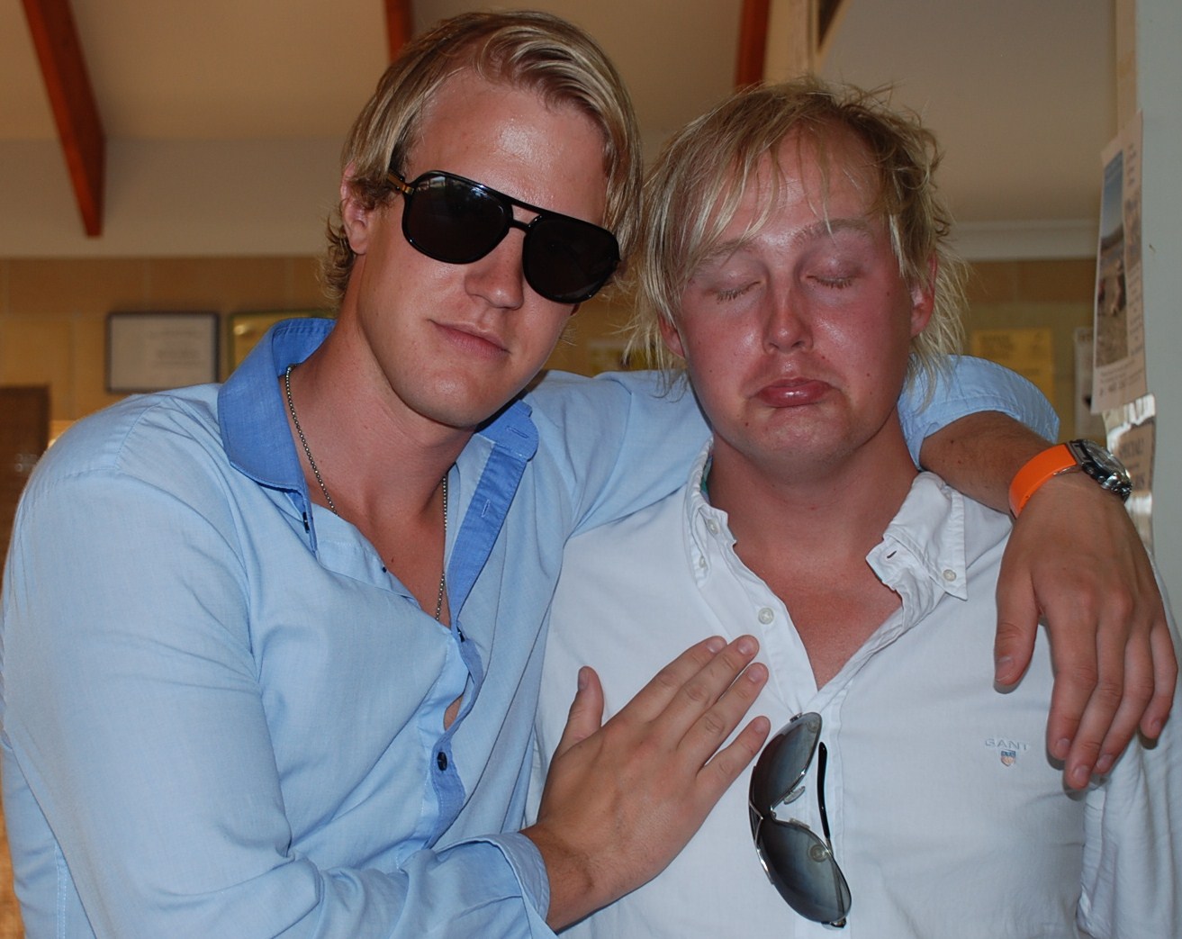 Fredagen var endelig over, en knallhard og varm dag. Anders og Lasse ble veldig solbrente og de har begge klare skiller på overkroppen. Det ser ikke veldig smart ut, så guttene beholder trøya på denne weekenden når de er i Brisbane.