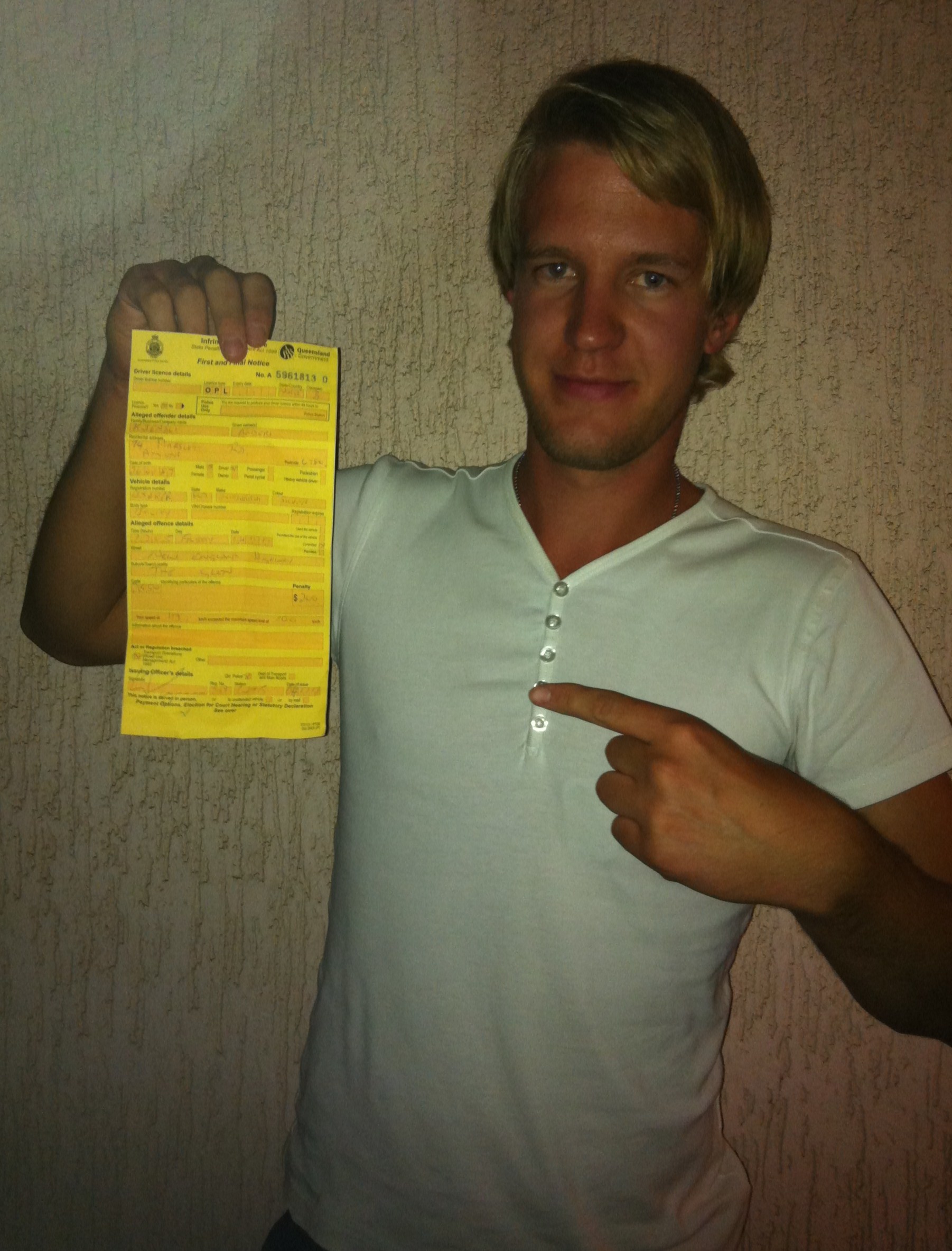 Anders måtte ut av bilen, blåse promilletest og han fikk tilbudet om å se hans egen kjøring på video (beviset på lovbruddet). Det takket han pent nei til ettersom det ikke ville forandre utfallet tenkte han. 119 km/t i 100 sone. Anders ble selv litt overrasket over de kalde fakta. Det utgjorde en bot på x-antall dollar.