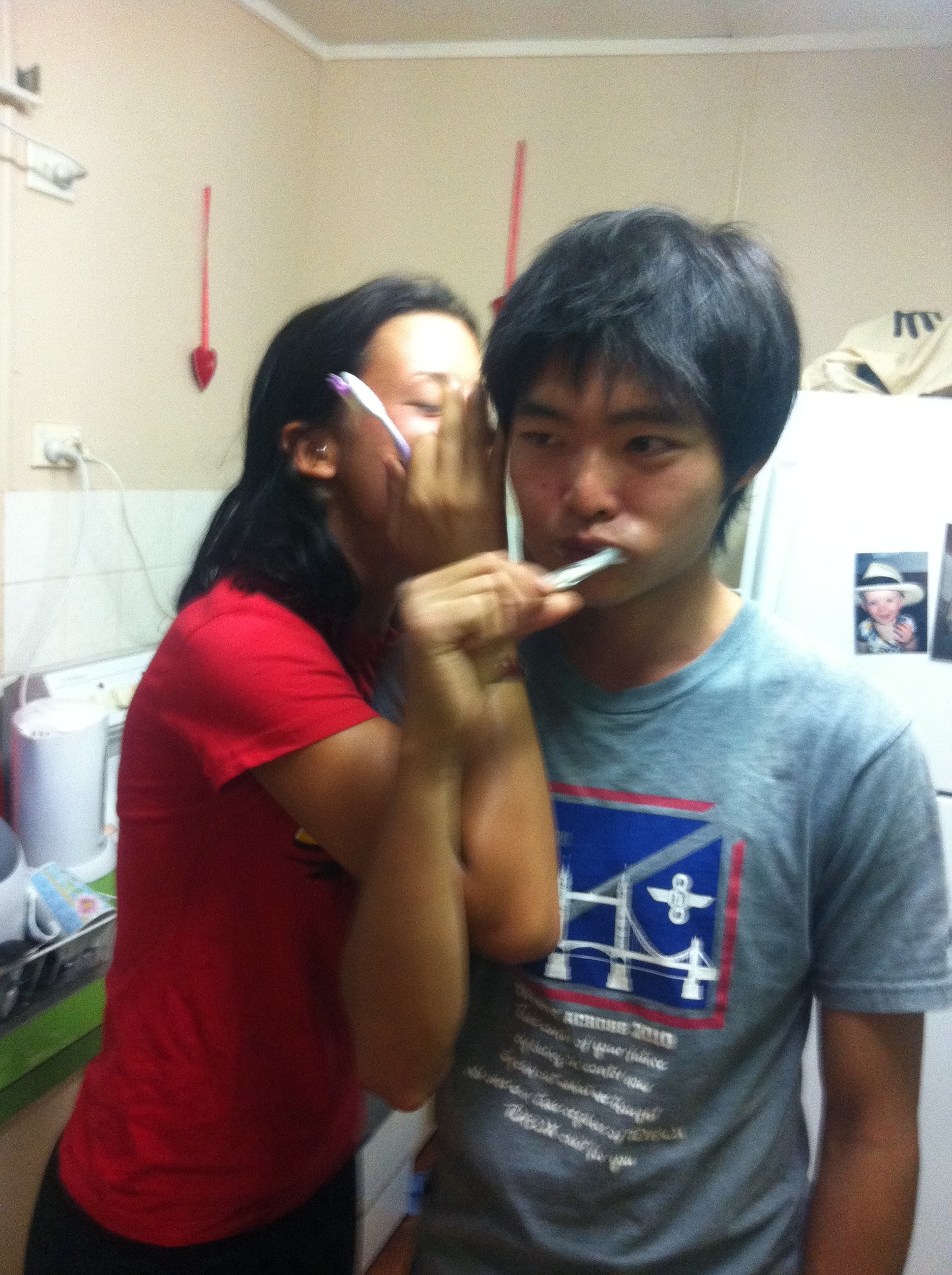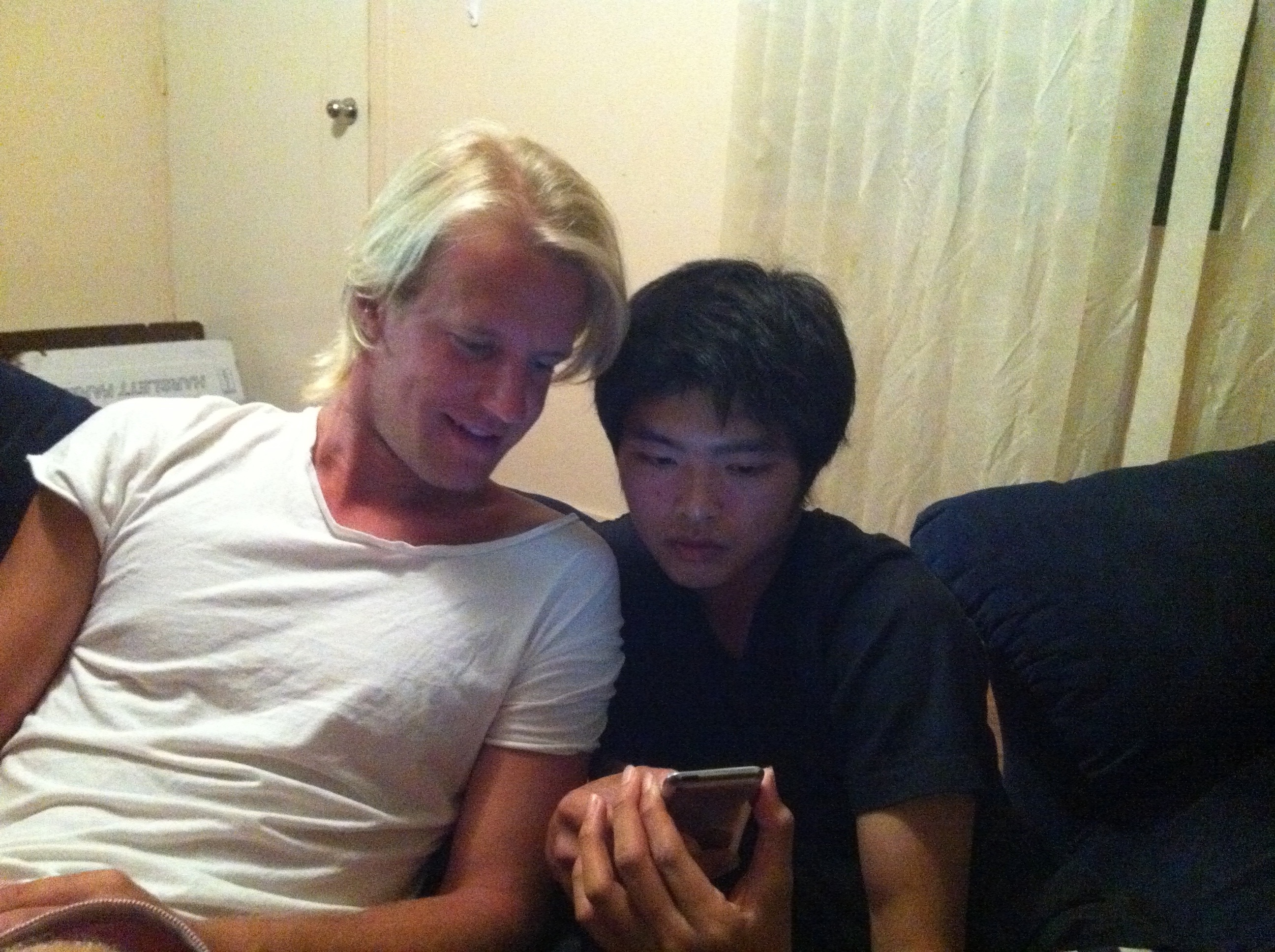 Om Curtis har blitt inspirert av de norske guttene er usikkert, men han inviterte ihvertfall ei Taiwansk jente på pizza fredag kveld. 5 til bords og Curtis er svært lykkelig om dagen. Et rødvinsglass og han svever på en hvit sky over alle de andre humørmessig sett uansett.